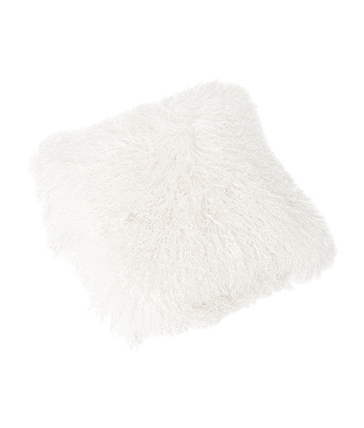 The bright white Tibetan Lambskin pillow cover adds a unique warmness and style to any room.