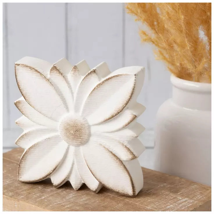 White Flower Distressed Wood Sitter